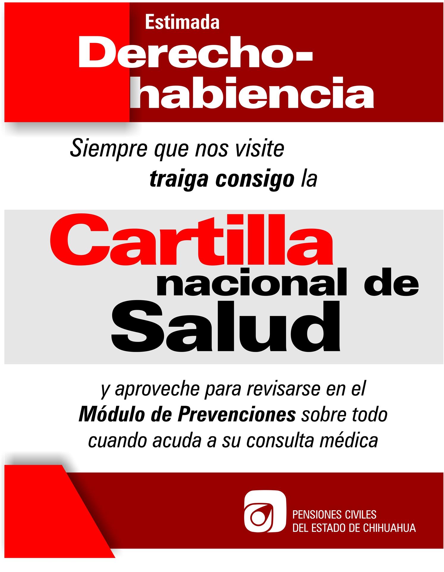 Estimada Derechohabiencia, siempre que nos visite, traiga consigo la Cartilla nacional de Salud