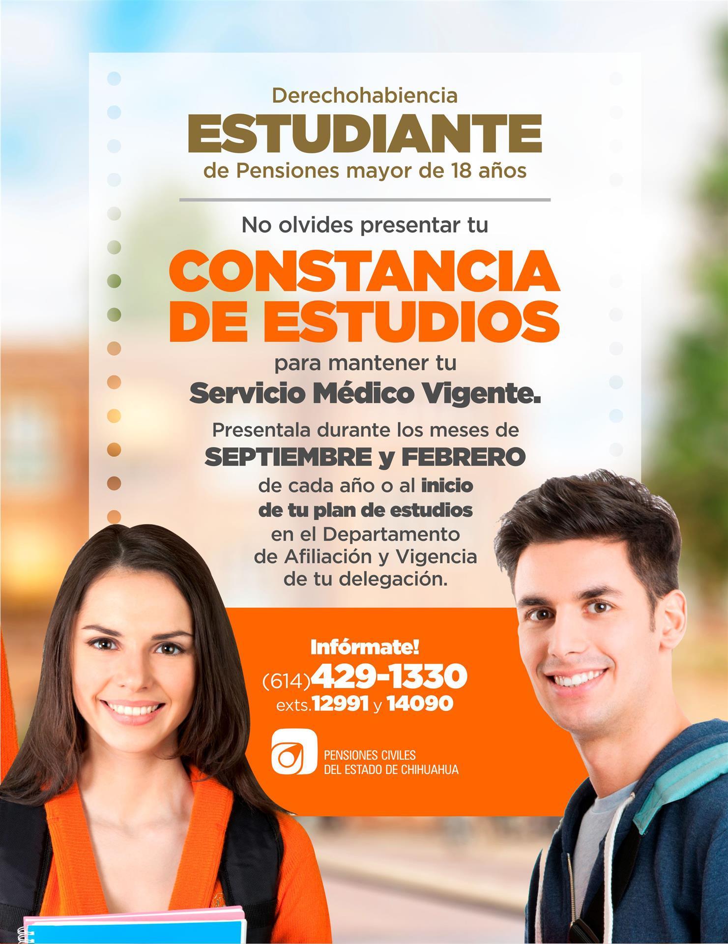 Derechohabiencia ESTUDIANTE de Pensiones mayor de 18 años, No Olvides presentar tu CONSTANCIA DE ESTUDIOS para mantener tu Servicio Médico Vigente