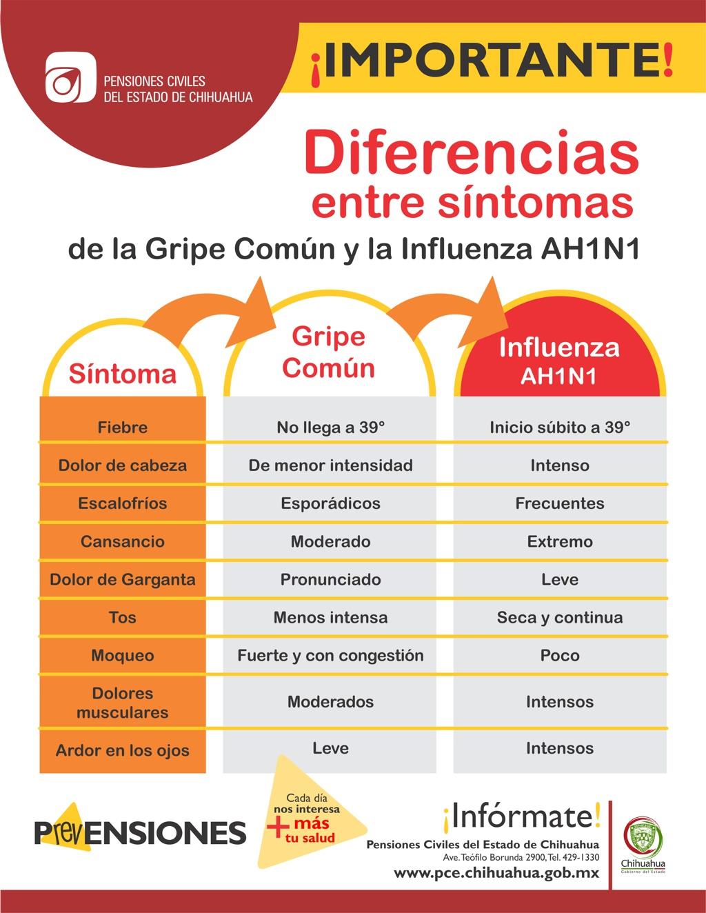 Diferencia entre síntomas de la Gripe Común y la Influenza AH1N1