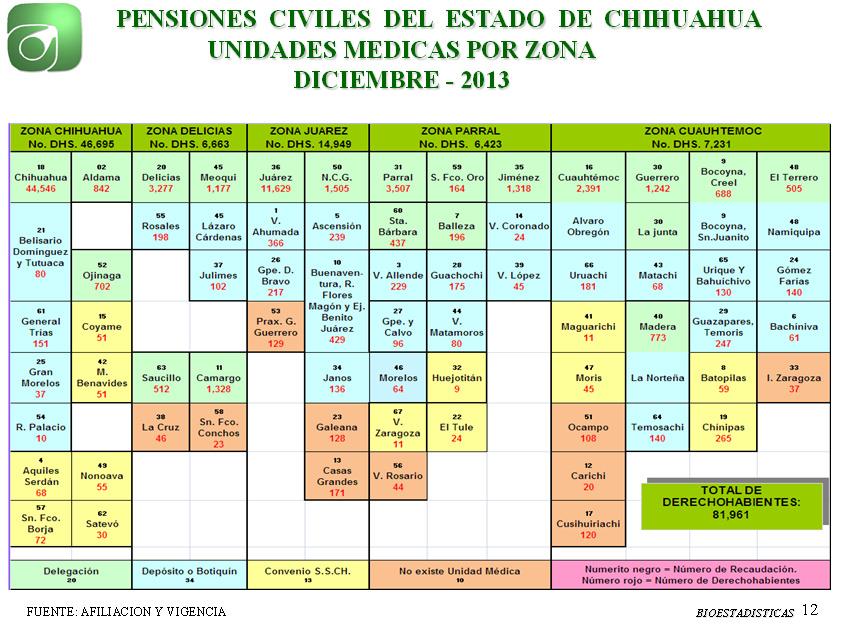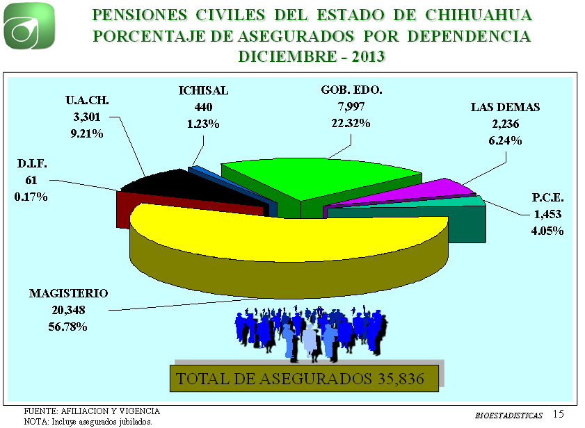 Más del 56 % de los asegurados de Pensiones Civiles del Estado son profesionistas del Magisterio, el 22% trabajadores del Gobierno del Estado, el 9% de la UACH y el 4% son trabajadores de Pensiones Civiles. Esto significa que el 91% de los trabajadores afiliados corresponde a personas con un buen nivel de educación y cultura, que se espera que sea corresponsable del autocuidado de su salud, aunque también, es una población que está informada de los avances en salud y por lo tanto es más demandante de servicios de calidad, de tecnología de punta en los recursos para la salud y esto genera mayor costo a la Institución, para satisfacer esta demanda.