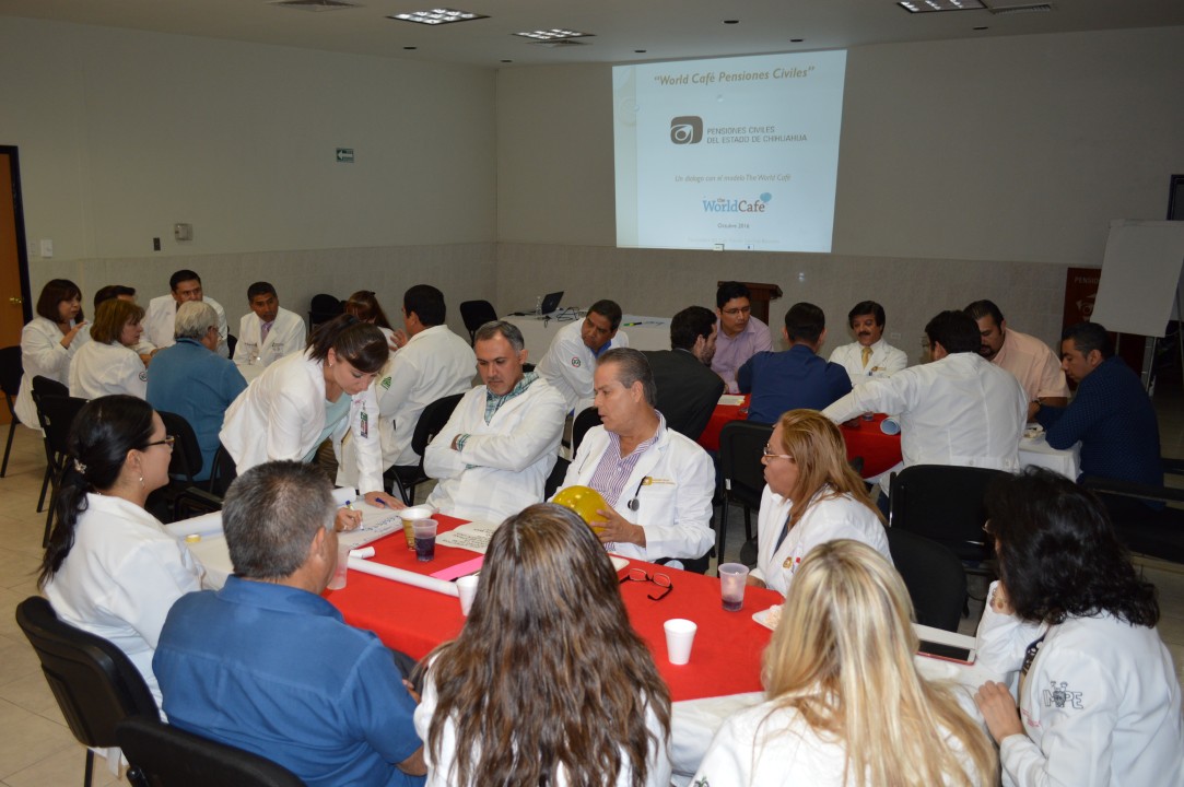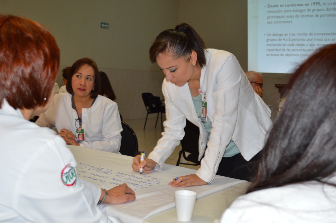 Con la finalidad de generar un compromiso por seguir mejorando nuestros servicios médicos en beneficio de la derechohabiencia, este día se llevó a cabo un "World Café" con mesas de trabajo, donde el personal médico de esta institución y de los diferentes turnos participaron con lluvia de ideas, con el objeto de implementar formas de trabajo más eficientes y llevarlas a la práctica diaria de su consulta. Ahí mismo nuestro director general C. P. Alberto Herrera González les dirigió un mensaje de felicitación a los profesionales de la salud con motivo del "Día del Médico" celebrado el pasado 23 de octubre, y pedirles de su colaboración por mantener un nivel de atención de excelencia en pro de nuestra institución.