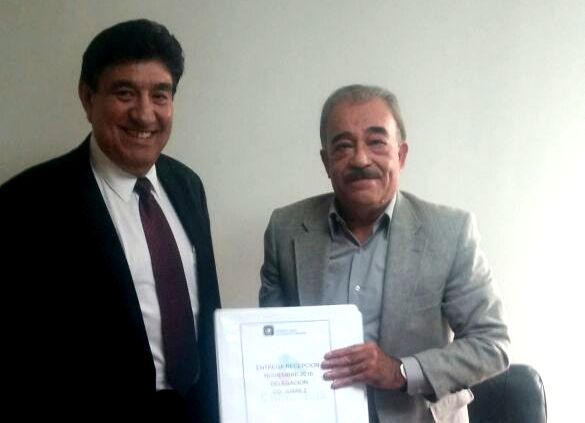 En una rueda de prensa el C.P. Alberto Herrera González director general de Pensiones Civiles del Estado, acompañado del Dr. Jorge Luis Issa González, director médico de la Institución, y el subsecretario de gobierno del estado en esta entidad C.P. Ramón Galindo Noriega, dio a conocer al nuevo titular de esta Institución en Cd. Juárez, Ing. Daniel Jorge Mena Eng. El director de Pensiones expresó que existe mucha expectativa por mejorar los servicios de esta delegación dada la gran experiencia de su nuevo titular a quien se le ha encomendado especialmente un esfuerzo especial en la atención a la derechohabiencia de Pensiones en esta frontera. Por su parte el Ing. Mena Eng dijo que Pensiones brinda servicio a mas de 20 mil derechohabientes en esa frontera, por quienes se estarán trabajando con gran responsabilidad y ética por brindarles un servicio de calidad, poniendo énfasis en un trato sensible en todos los caso que se presenten.