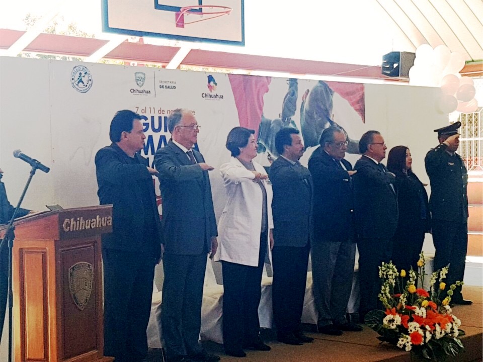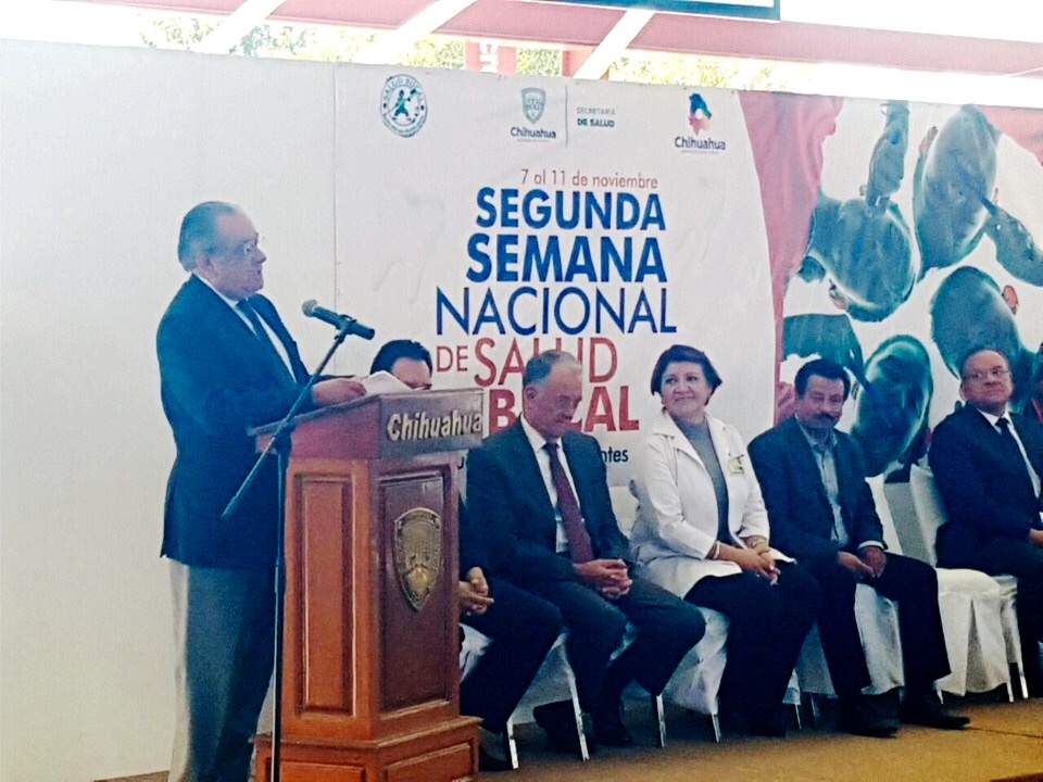 El director general de Pensiones Civiles C.P. Alberto Herrera González en compañía de autoridades del sector salud en el estado, asistió esta mañana a la ceremonia de clausura de la “Semana Nacional de Salud Bucal” efectuada en las instalaciones de la Escuela "Enrique Rebsamen".