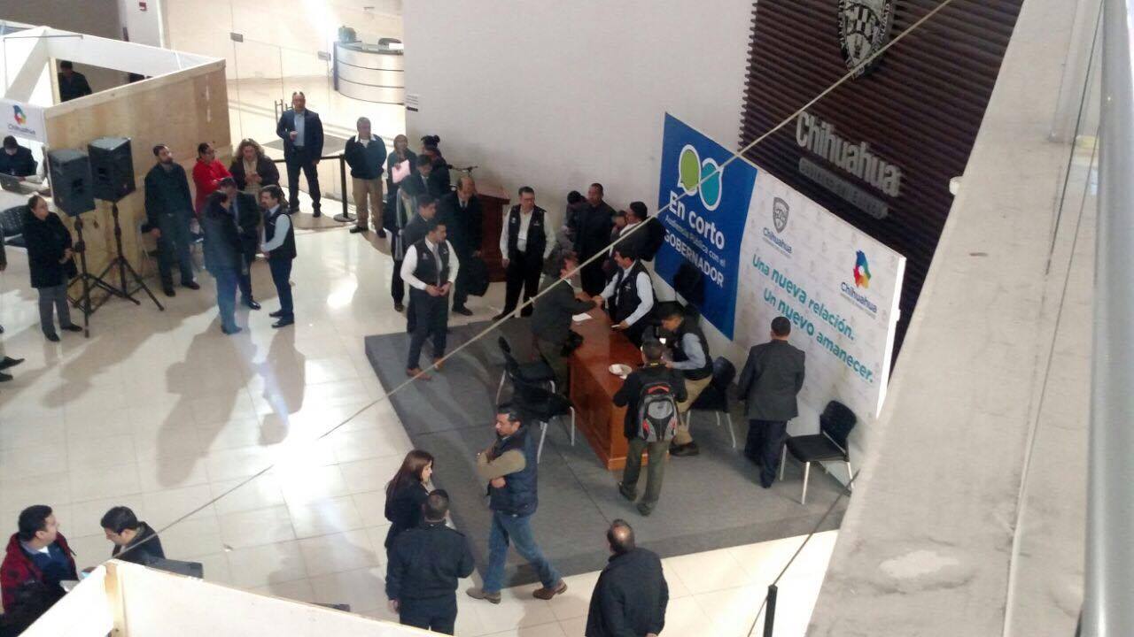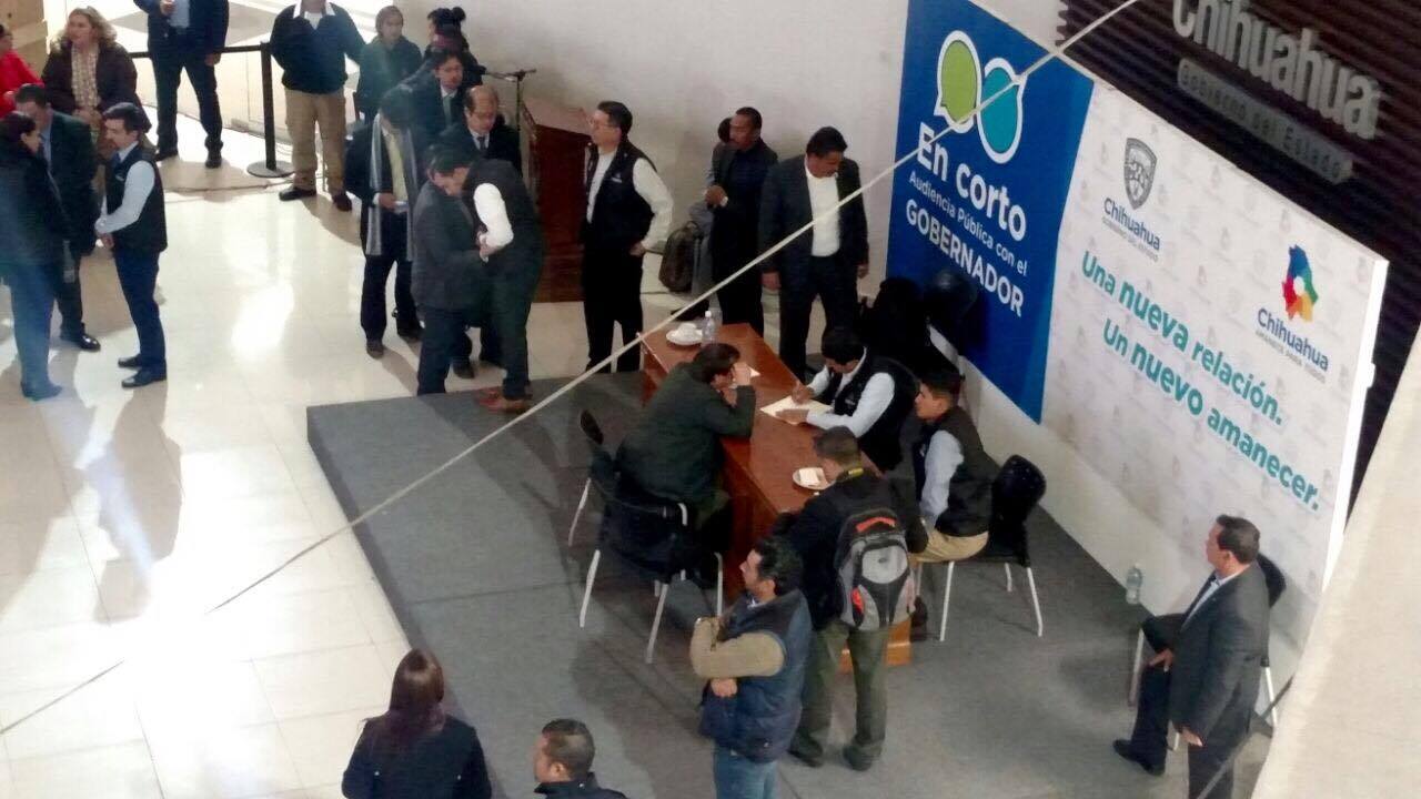 Con la finalidad de tener un acercamiento con la comunidad fronteriza y conocer todas sus inquietudes, el Gobierno del Estado a través de sus diversas dependencias, instaló esta semana su primer audiencia pública en el edificio de gobierno en Cd. Juárez , "En Corto Audiencia Pública con el Gobernador; Una Nueva Relación, Un Nuevo Amanecer", donde se atendieron múltiples solicitudes por parte de la ciudadanía recibidas personalmente por el gobernador Corral. Pensiones Civiles estuvo muy bien representada por su director general C.P. Alberto Herrera, el delegado de Pensiones de esta localidad Ing. Daniel Mena y personal de la Institución.