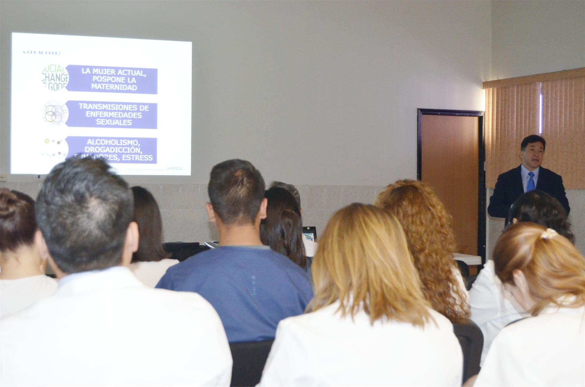 Estadísticamente la infertilidad es una enfermedad que aqueja del 15% - 20% de las parejas; de las cuales el 40% corresponde a la mujer, 40% al varón, y el 20% restante es causado por factores diversos. En el caso de la mujer el problemas ha aumentado cada año principalmente debido al rol que actualmente desempeñan, pues éstas buscan procrear a sus hijos sin la ayuda del varón, es decir, lo hacen a través de dos métodos principalmente: de baja complejidad para pacientes con falta de ovulación; y la de alta complejidad en la que la fertilización es In Vitro, así como, la inseminación cito-plasmática o la donación de óvulos y por bancos de semen. El Dr. Carlos Hurtado Uriarte fue el ponente de esta interesante charla apoyándose con datos estadísticos y aplicativos para nuestra población derechohabiente, y la finalidad de mantener actualizado a nuestro personal médico en temas tan relevantes como éste.