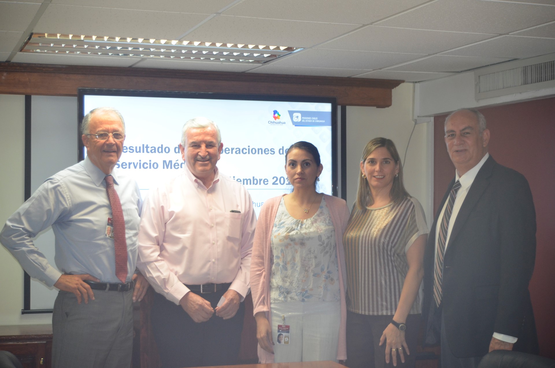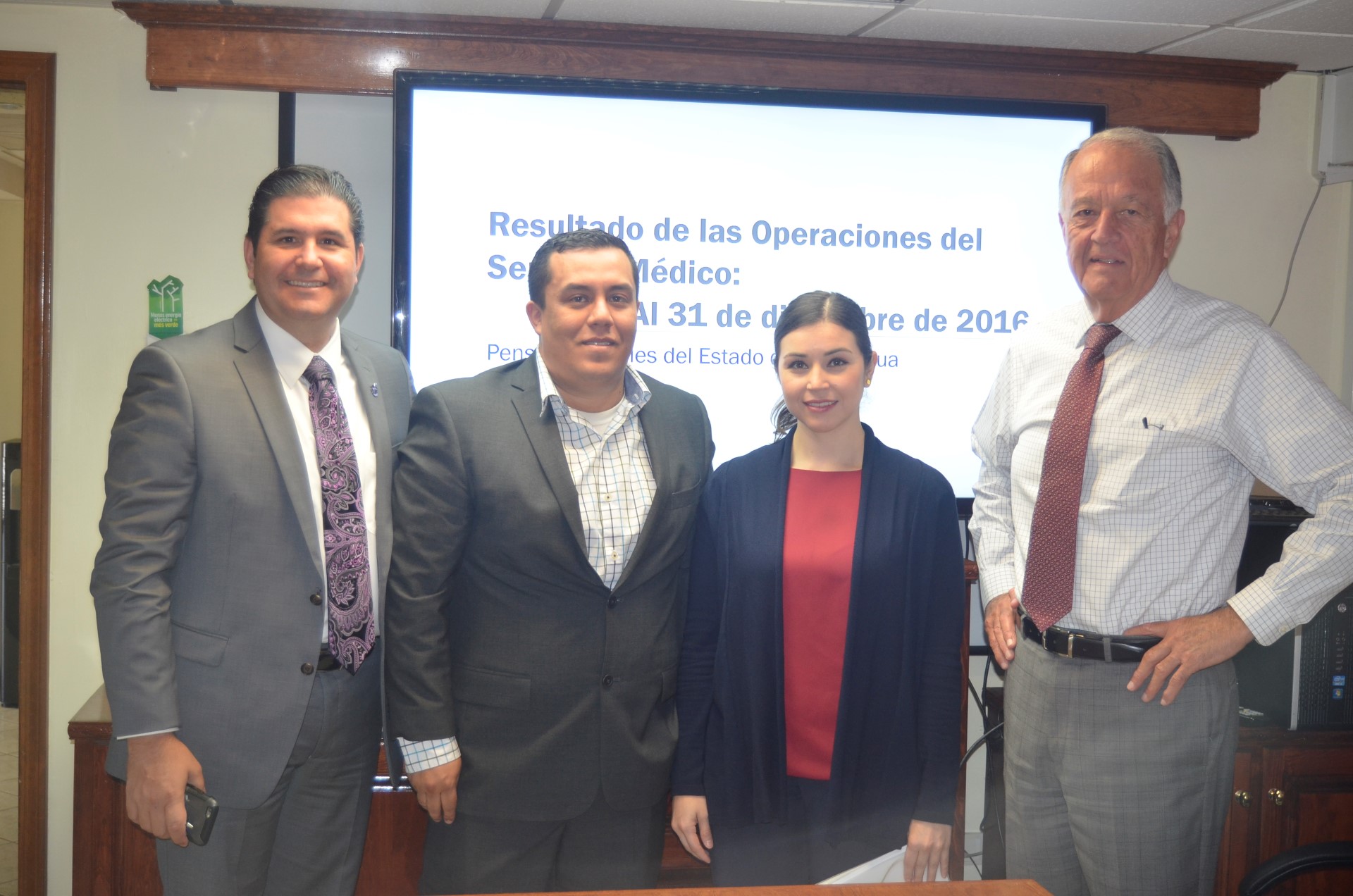 19 Octubre 2017, Chihuahua, Chih.- El C.P. Alberto José Herrera González Director General de Pensiones Civiles del Estado, se reunió en días pasados con personal administrativo por parte del Hospitales Ángeles el Dr. Rodolfo Chávez Chávez y Director de Finanzas Jorge Hernández y de Christus Murgueza Dr. Luis Garza Elizondo Director General y C.P. Carlos Pineda Director de Finanzas. Con la finalidad de dar a conocer el resultado de las operaciones del servicio médico de la institución, así como darles a conocer un plan estratégico para el 2018, así como agradecer el apoyo brindado hasta el momento.