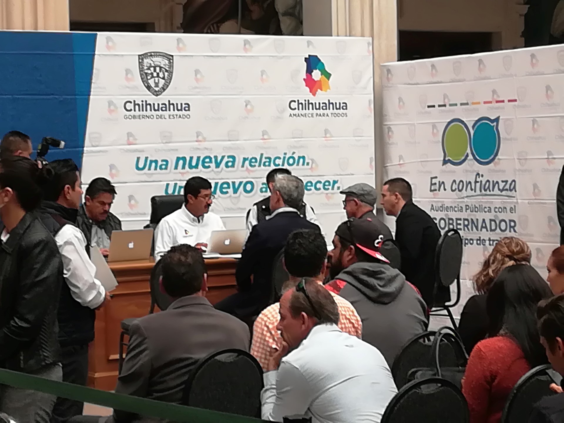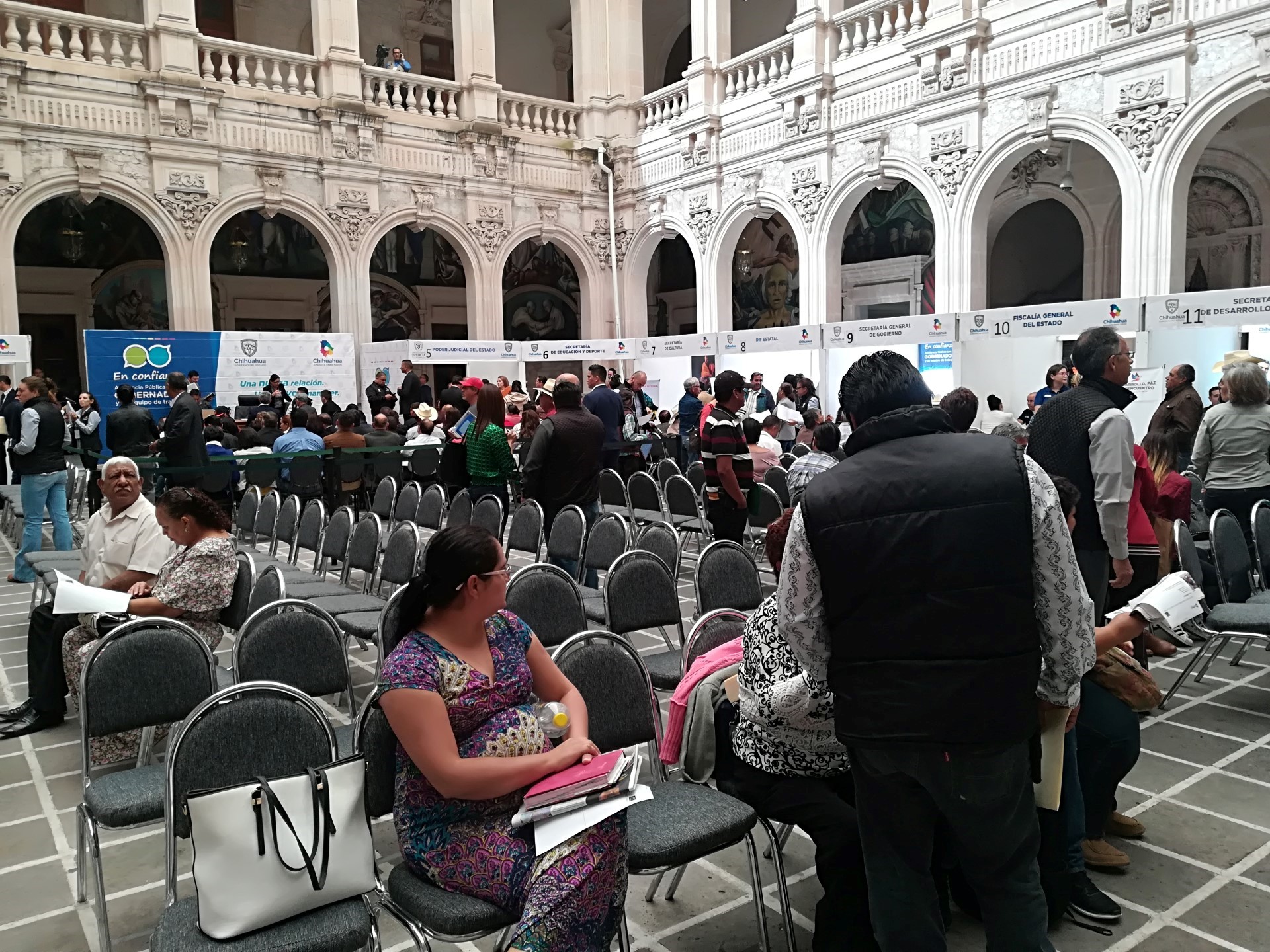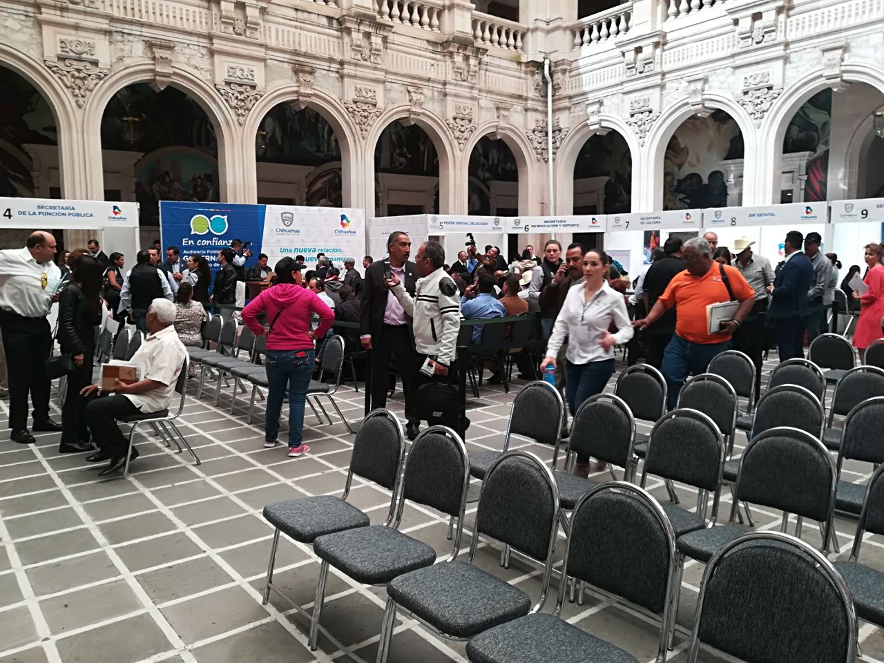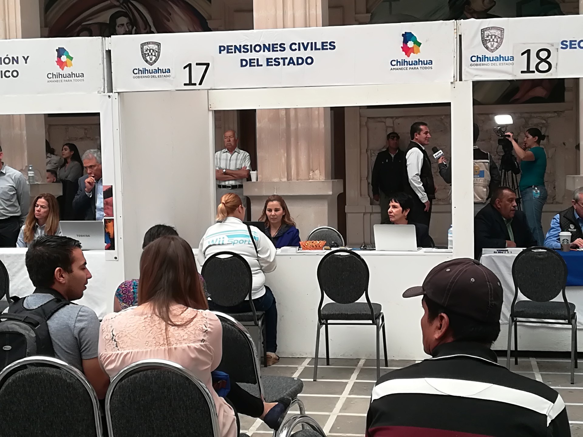 25 Octubre, Chihuahua, Chih. En el marco de las audiencias públicas que se celebran cada mes en el patio central de Palacio de Gobierno, Pensiones Civiles del Estado instaló un módulo de atención ciudadana, con la finalidad de tener una cercanía con la derechohabiencia de la institución Se atendieron diversos casos que son de importancia para la dirección de esta institución a cargo de Alberto José Herrera González, ya que los ciudadanos son el pulso para diagnosticar el servicio que se les otorga. Imelda Borunda y Silvia Pérez encargadas de atender a los derechohabientes reportaron al cierre de las jornadas de audiencias públicas, lograron concretar siete casos de 10 que fueron atendidos, el resto estará en proceso para resolverlo en los próximos días en la coordinación correspondiente. Cabe hacer mención que los casos más recurrentes son los relativos a préstamos y jubilaciones.