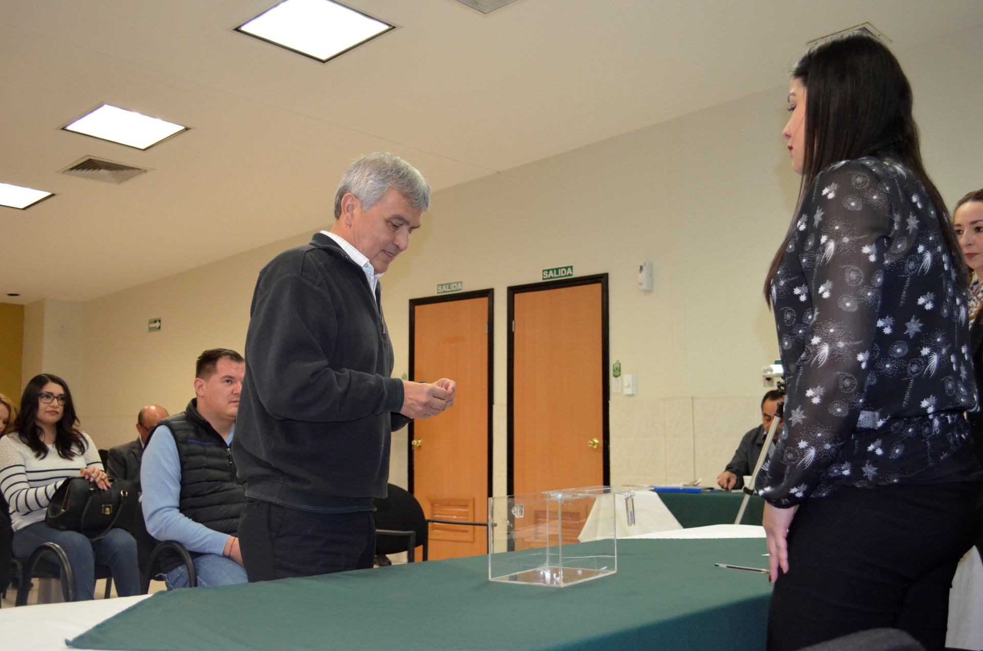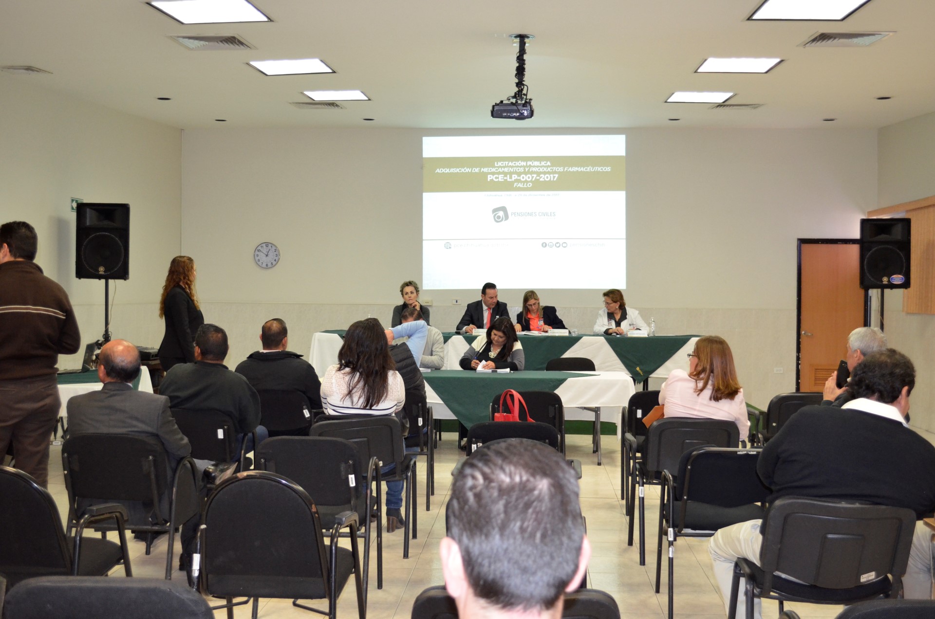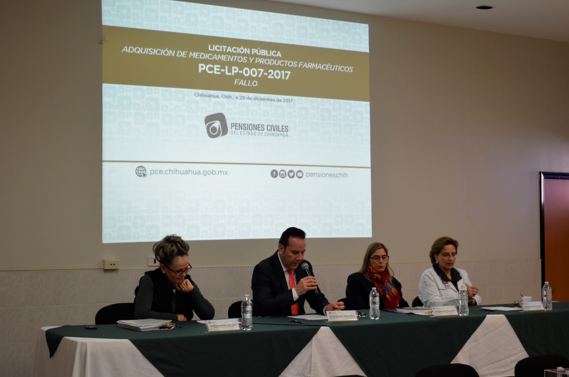 La Junta de Adjudicación fue presidida por el Comité de Adquisiciones de PCE, integrado por el director Administrativo, José Francisco Almanza Alarcón; la coordinadora Jurídica, María del Refugio Dowz Torres; la directora de Finanzas, Martha Elena Chávez Almada; Desireé Sagarnaga Durán, titular de la Delegación Chihuahua, así como el representante de la Secretaría de la Función Pública, Víctor Martínez.