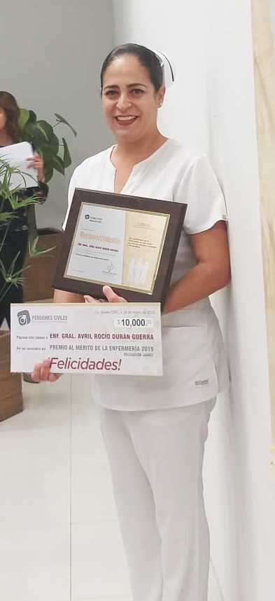 Con la entrega del galardón al profesional de enfermería 2019 a Avril Durán Guerra, de la Unidad de Hemodiálisis de Pensiones Civiles del Estado Delegación Juárez, celebraron el Día Internacional de Enfermería en la frontera.