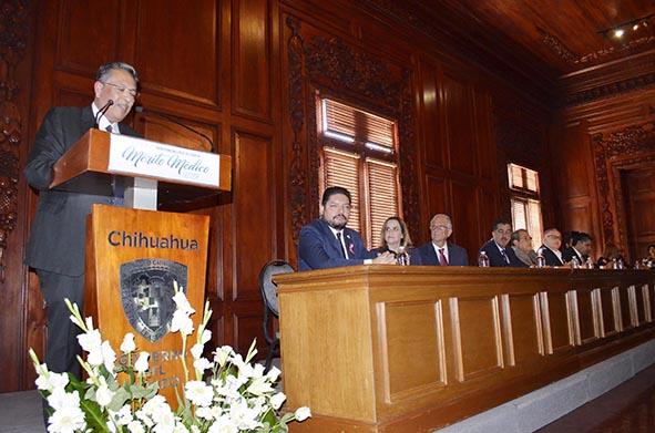 El galardonado recibió un reconocimiento y un estímulo económico de 50 mil pesos de manos del secretario de Salud, Dr. Jesús Enrique Grajeda Herrera, integrante de la Junta Directiva de Pensiones y quien asistió en representación del gobernador del estado, Javier Corral Jurado.