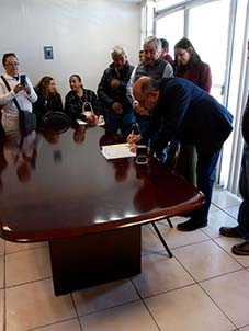 La comisión tuvo representación de maestros, jubilados, pensionados y personal activo, quienes entregaron un oficio para externar su preocupación por la falta de pago de la gratificación anual de los pensionados y jubilados del gremio.