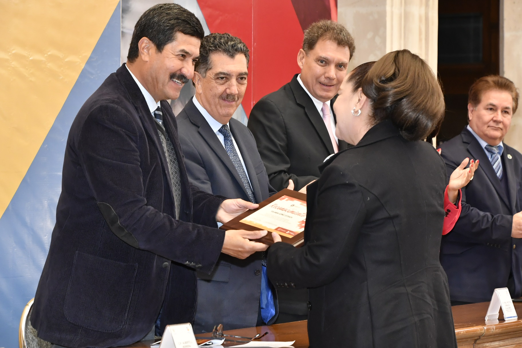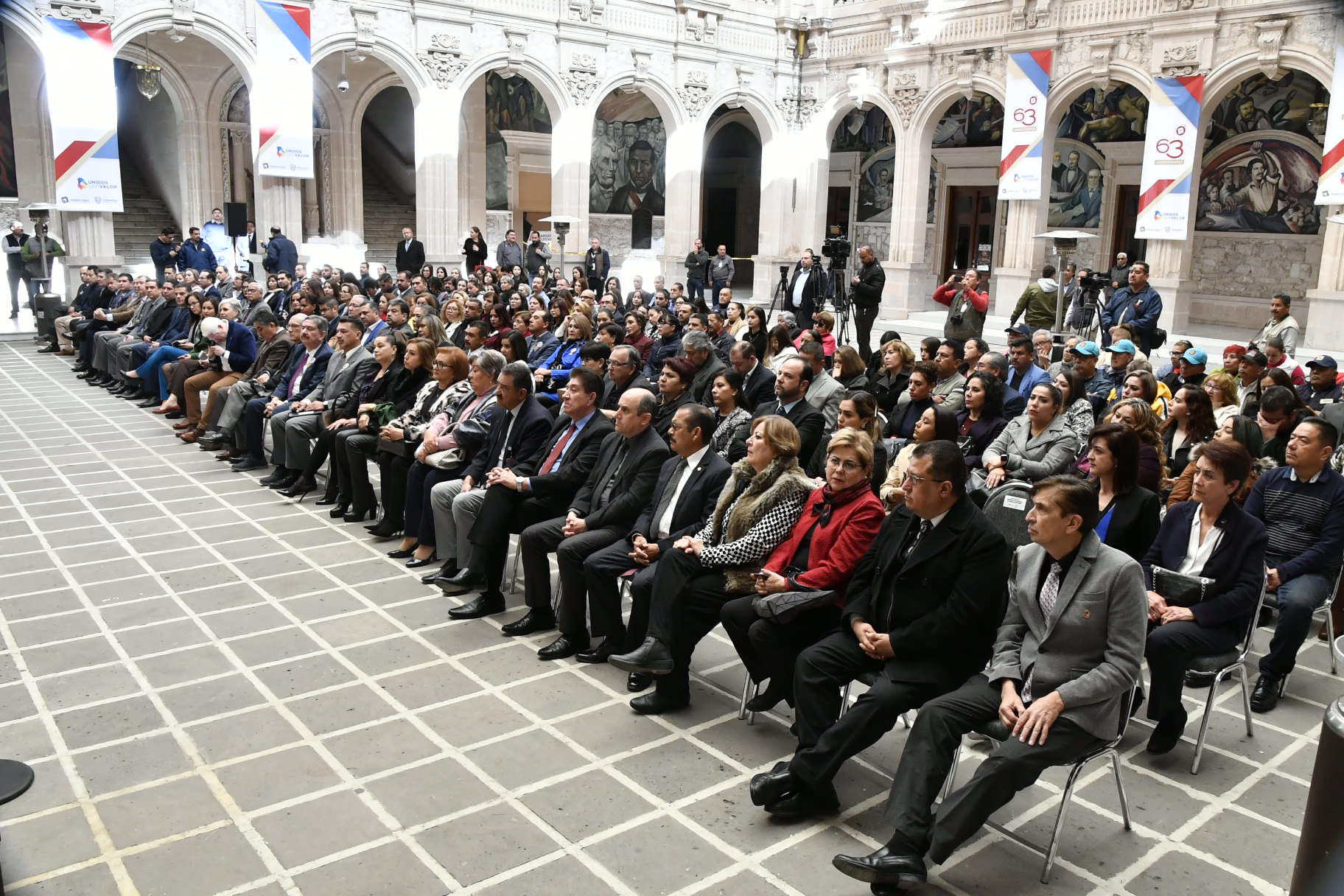 Al conmemorar el 63 Aniversario de Trascendencia y Prestigio de Pensiones Civiles del Estado, en el Patio Central del Palacio de Gobierno, el gobernador Javier Corral entregó reconocimientos a quienes cumplen 20, 25 y 30 años de servicio, y extendió la felicitación todos los que laboran y forman parte de la institución, porque gracias a las y los trabajadores se ha podido elevar la calidad de la atención y sumar importantes avances.