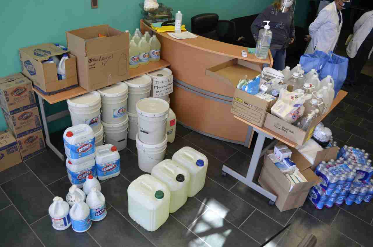 En total se recibieron 109 batas blancas, 864 cubrebocas, 43 litros de gel antibacterial, 5 oxímetros, 4 termómetros, 400 piezas de guantes de látex, 250 litros de cloro, 42 litros de alcohol, 69 litros de sanitizante, 1 mil 240 bolsas negras, 144 botellas de agua y 70 máscaras.