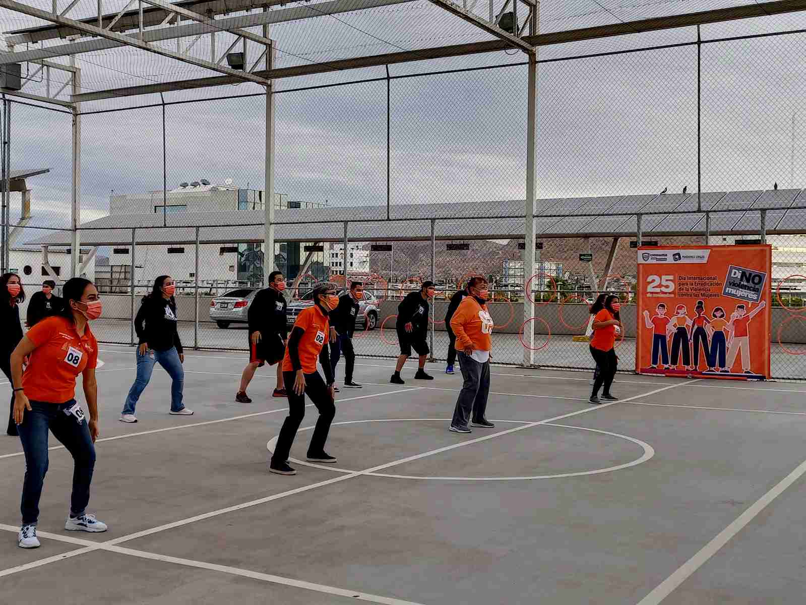 Se realizaron también dos actividades físicas, el “zumbaranja” en la cancha deportiva de la institución y una cascarita de básquetbol, ambas actividadescon el fin de fomentar la actividad física y hábitos saludables entre los asistentes.