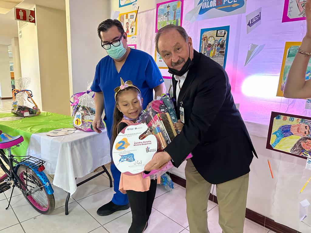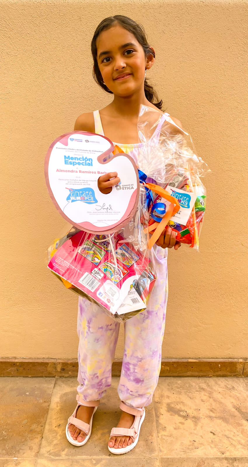 El primer lugar, lo obtuvo Alethia Hernández, 10 años, con el dibujo titulado “La hora de llegada” representando el valor de la responsabilidad, fue acreedora a una bicicleta y un kit de dibujo. El segundo lugar, lo consiguió Kendra Rivera, 6 años, con el dibujo titulado “En PCE la justicia es para todos, representando el valor de la justicia y el tercer lugar, lo logró Christian Rubio, 9 años, con el dibujo titulado “Todos los valores”, representando los 7 valores institucionales y los jueces otorgaron una Mención Especial a la niña, Almendra Ramírez, 7 años, con el dibujo “Mi abuela y yo”, representando el valor de la empatía.