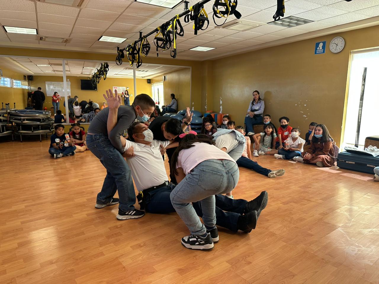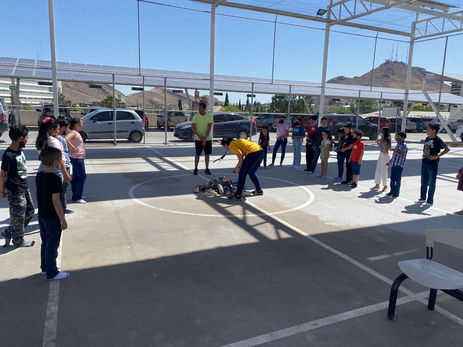 Los instructores del Centro de Activación, Hiram Anaya y Karen Arredondo, les impartieron una rutina de ejercicios y juegos recreativos.