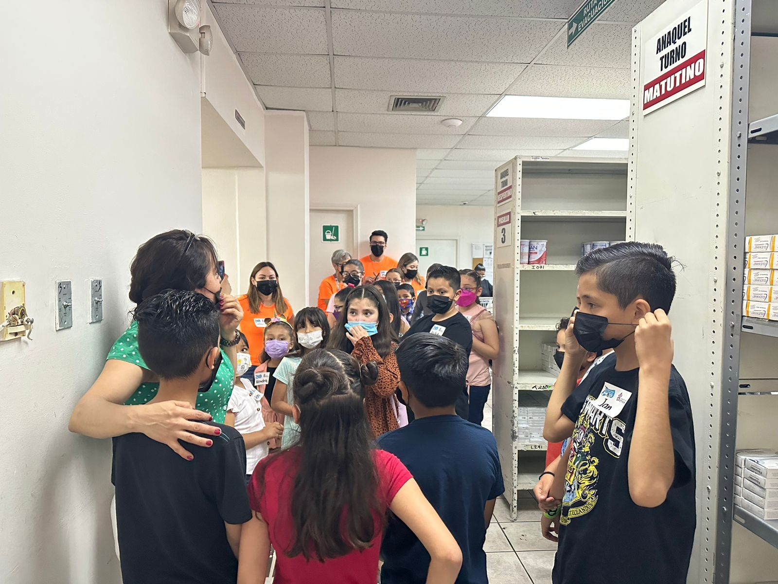 La responsable del área de Farmacia, Olivia Aguilar, les explicó el proceso del surtimiento de medicamentos. En el área de PrevENSIONES, el personal de enfermería les enseñó cómo se preparaban las vacunas e instruyeron sobre la técnica de cepillado e higiene bucal.