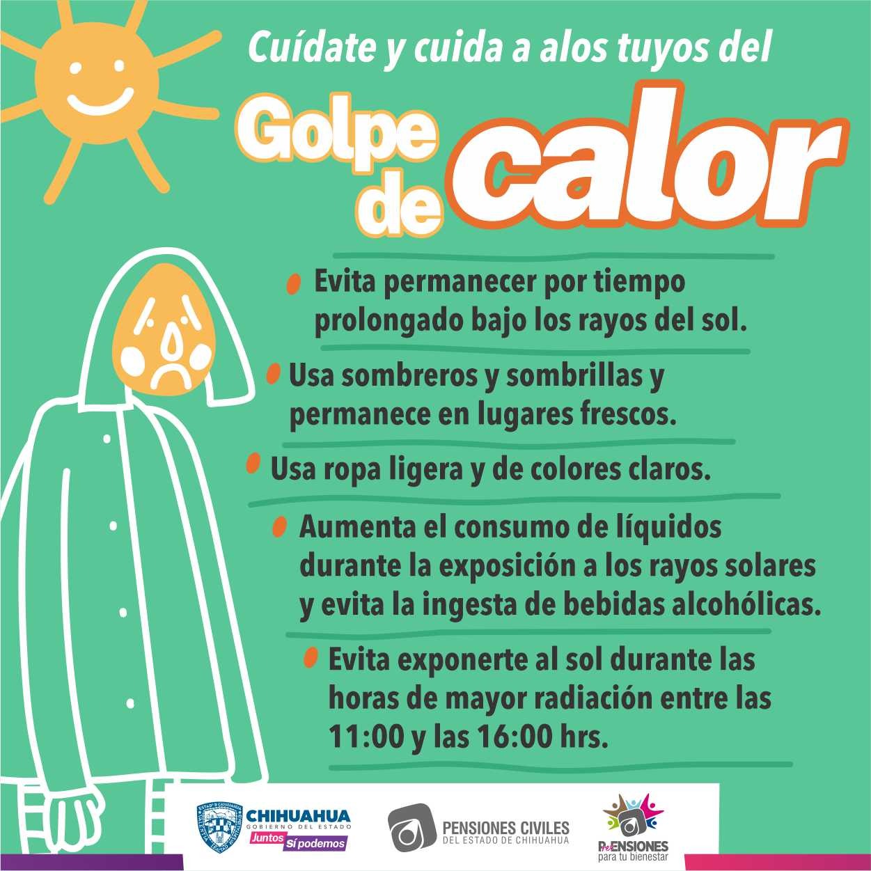 Pensiones Civiles pide cuidar a las personas mayores de 60 años, niños menos de 5 años, personas con discapacidad física, enfermos crónicos y los pacientes cardíacos, ya que corren mayor riesgo de deshidratarse y/o sufrir un golpe de calor.