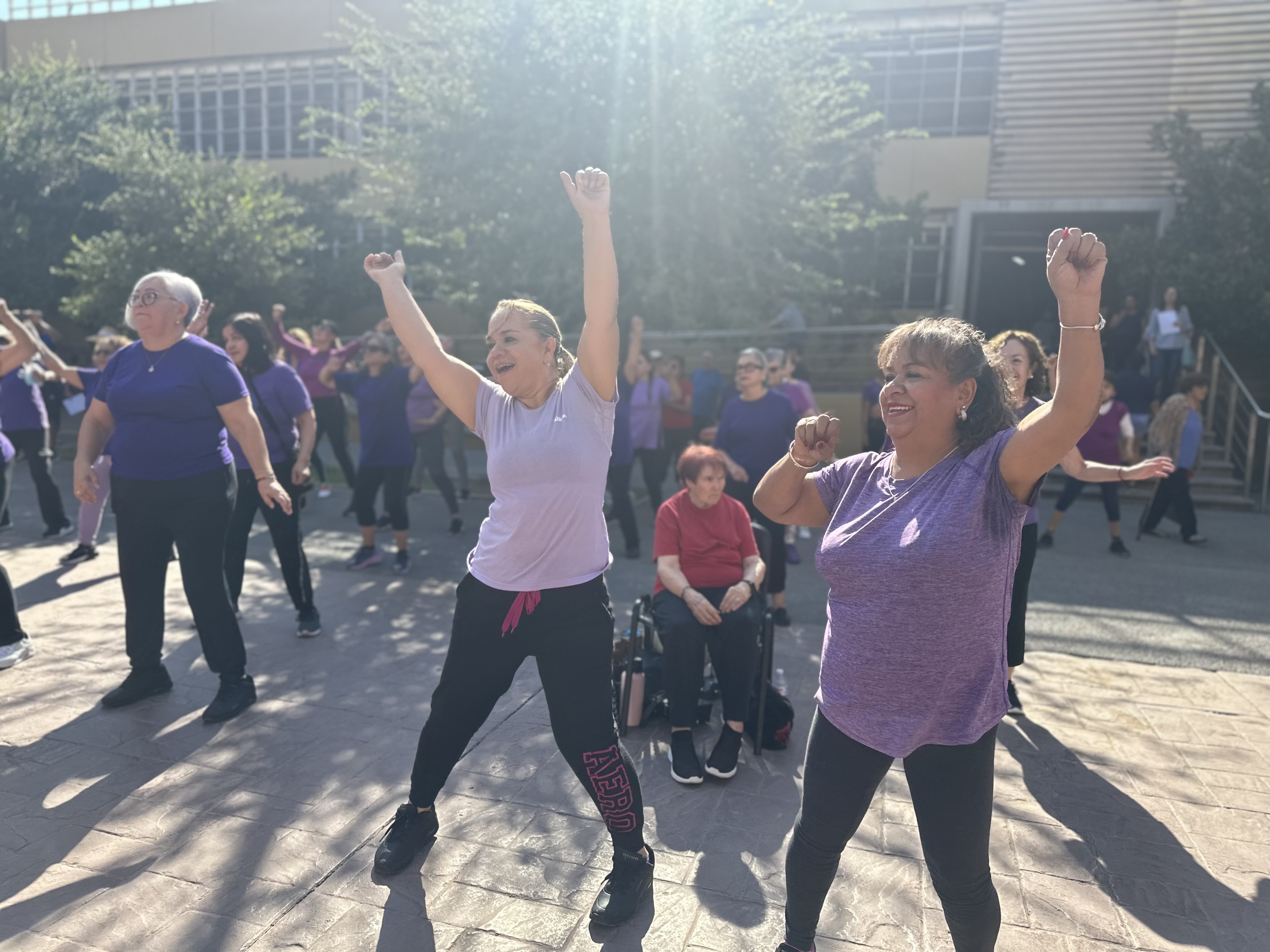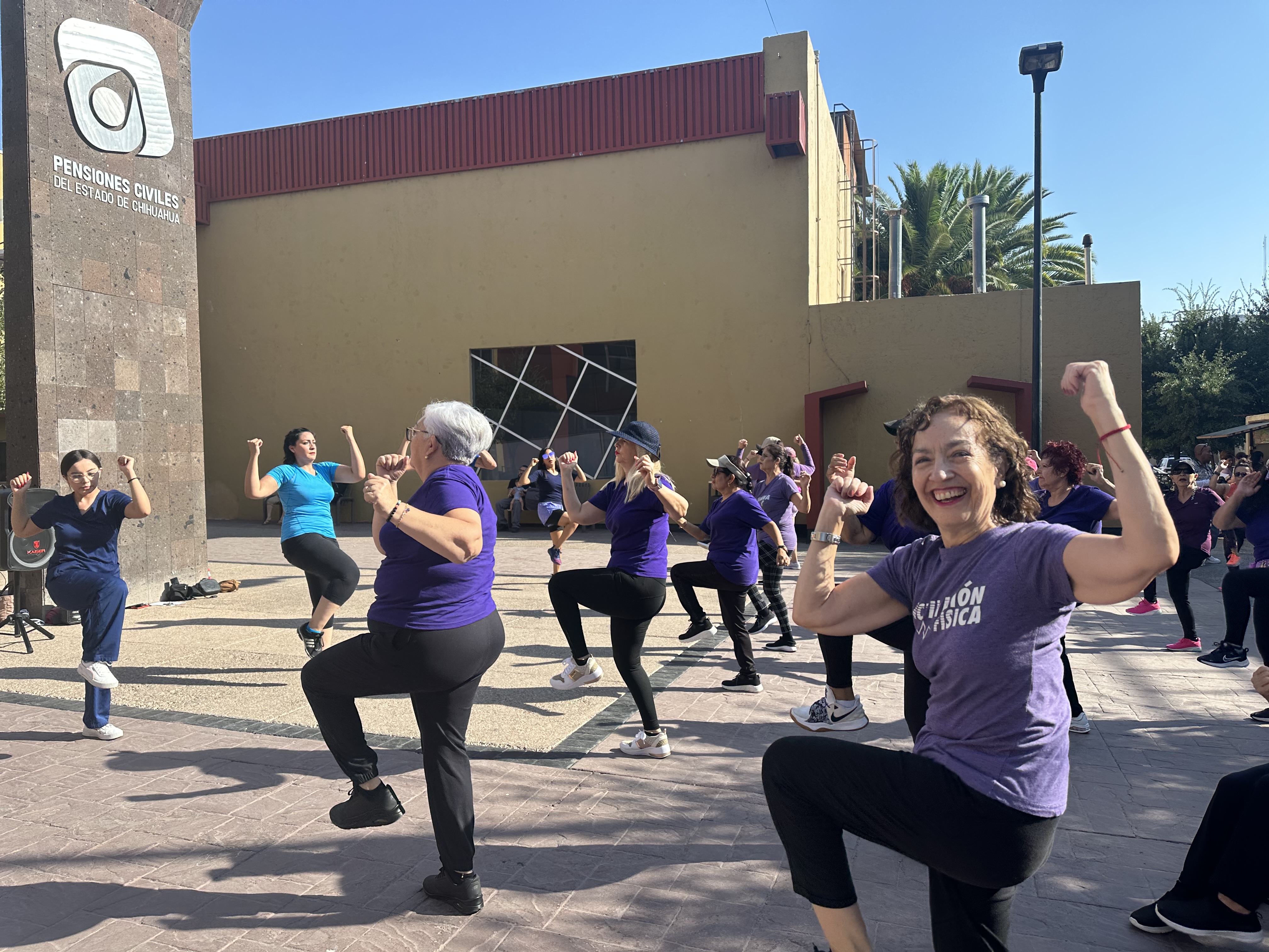 En el Día Nacional de las Personas Adultas Mayores, Pensiones Civiles del Estado (PCE) llevó a cabo una macro clase donde los asistentes realizaron calentamiento, zumba, baile latino y relajación, en la Plaza de la Salud de la institución.