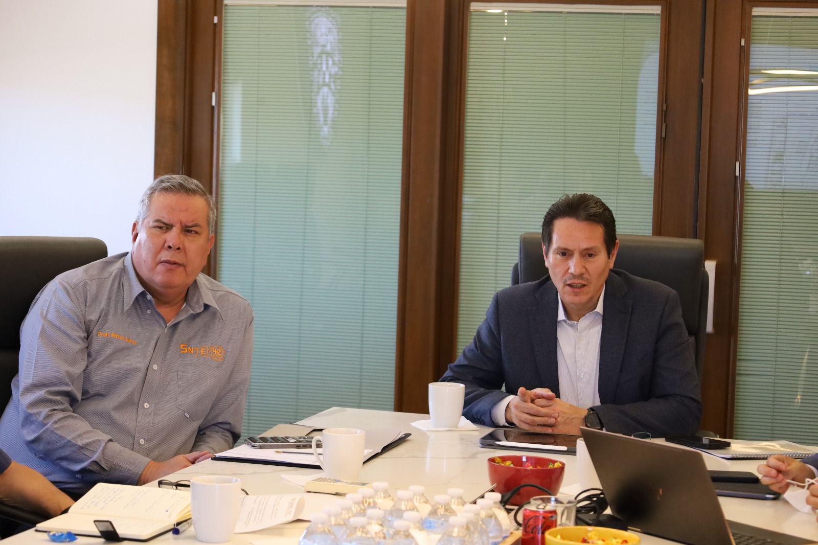 En el encuentro participaron el secretario de Hacienda, José de Jesús Granillo Vázquez; el secretario de Educación y Deporte, Francisco Hugo Gutiérrez Dávila; y el secretario general del SNTE Sección 42, Manuel Quiroz Carbajal, acompañado de los integrantes del Comité Ejecutivo Seccional.