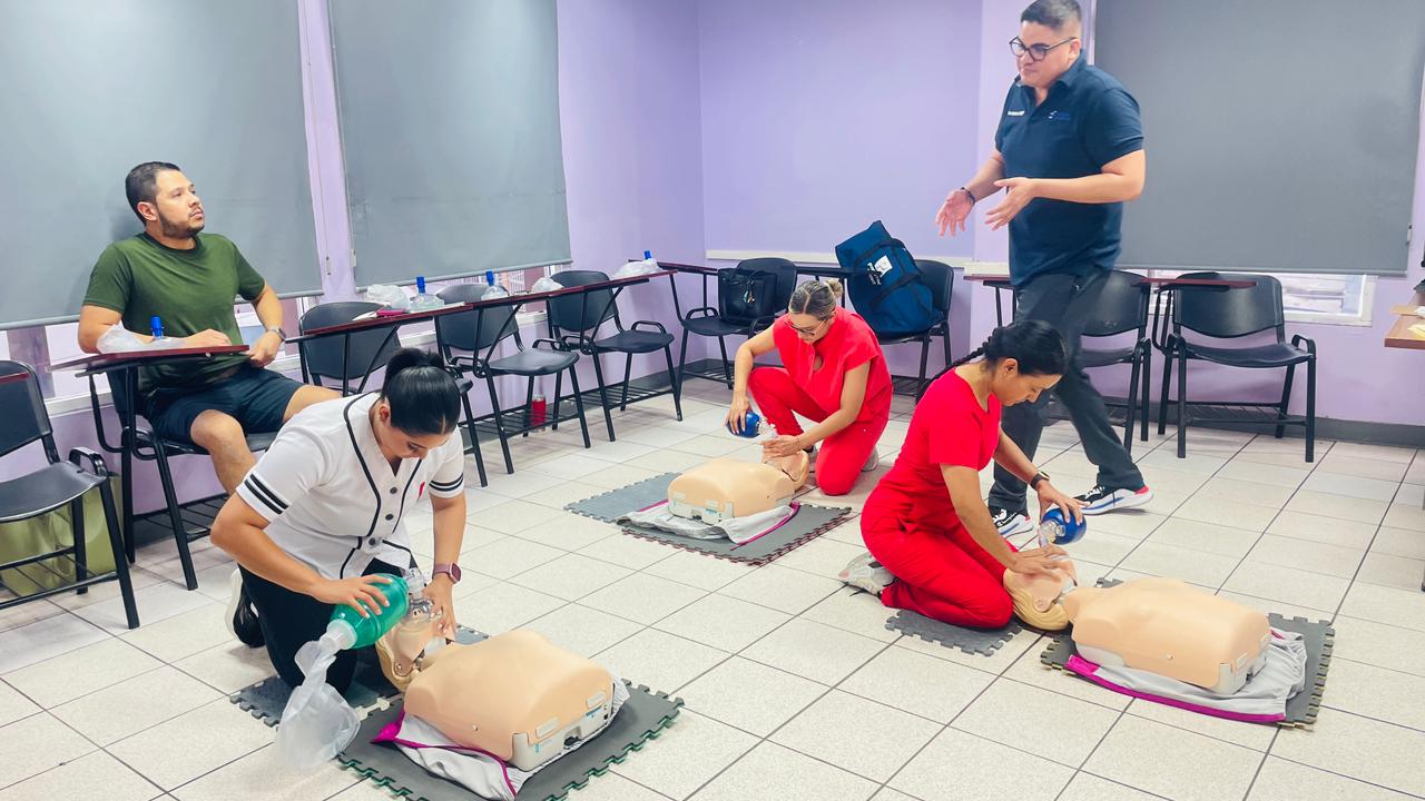 El curso de BLS incluyó reanimación cardiopulmonar (RCP), manejo de la vía aérea y uso de desfibriladores externos automáticos (DEA).