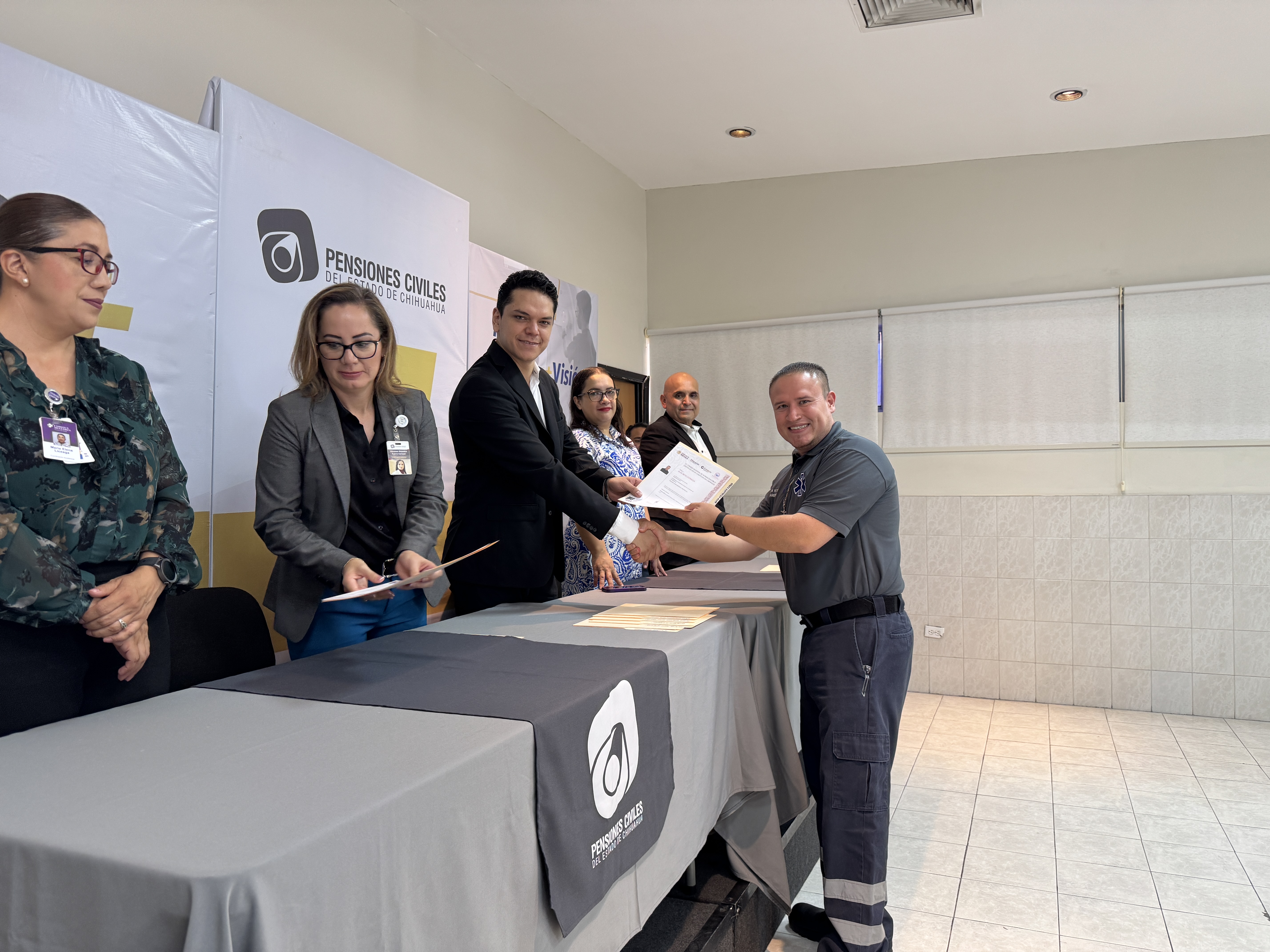 Con el propósito de brindar a la derechohabiencia una atención médica más segura y de calidad, personal de enfermería y paramédicos de Pensiones Civiles del Estado de Chihuahua (PCE), se certificaron en Atención Prehospitalaria nivel básico y Soporte Vital Básico (BLS).
